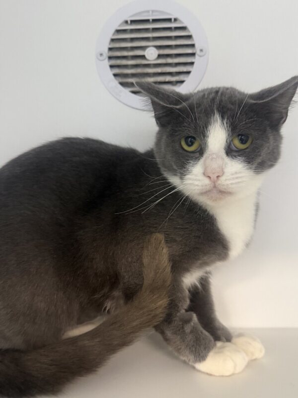 Hi, my name is Clover, and I’m a young cat looking for my forever home. I’m a quiet little soul and I like to take life at my own pace. I don’t really enjoy lots of interaction or busy playtime — instead, you’ll usually find me sitting on my hammock, watching the world go by in my own calm way. I’m happiest when I’m allowed to do my own thing and be left alone.