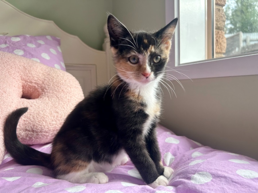 Madison is the perfect mix of confident explorer and affectionate cuddle bug. She’s playful, loving, and full of personality.