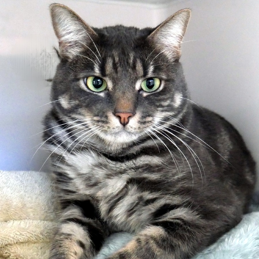 Ash is still a sensitive soul and will need a very patient, quiet home where he can continue to blossom at his own pace. He will take some time to settle in, but once he feels safe, his affectionate side begins to shine. He enjoys gentle attention and, when fully relaxed, loves nothing more than stretching out across a warm lap or bed for a peaceful snooze.
