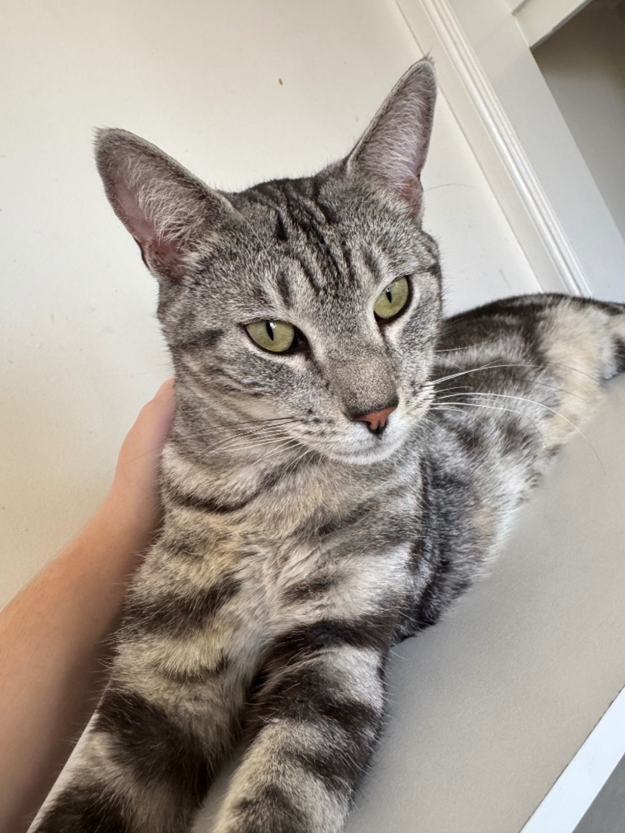 This handsome tabby boy has earned his nickname because he absolutely adores being close to his humans. Whether it’s curling up on your chest, snuggling into your arms, or drifting off to sleep while you hold him, Leo is all about love, comfort, and companionship 🥹