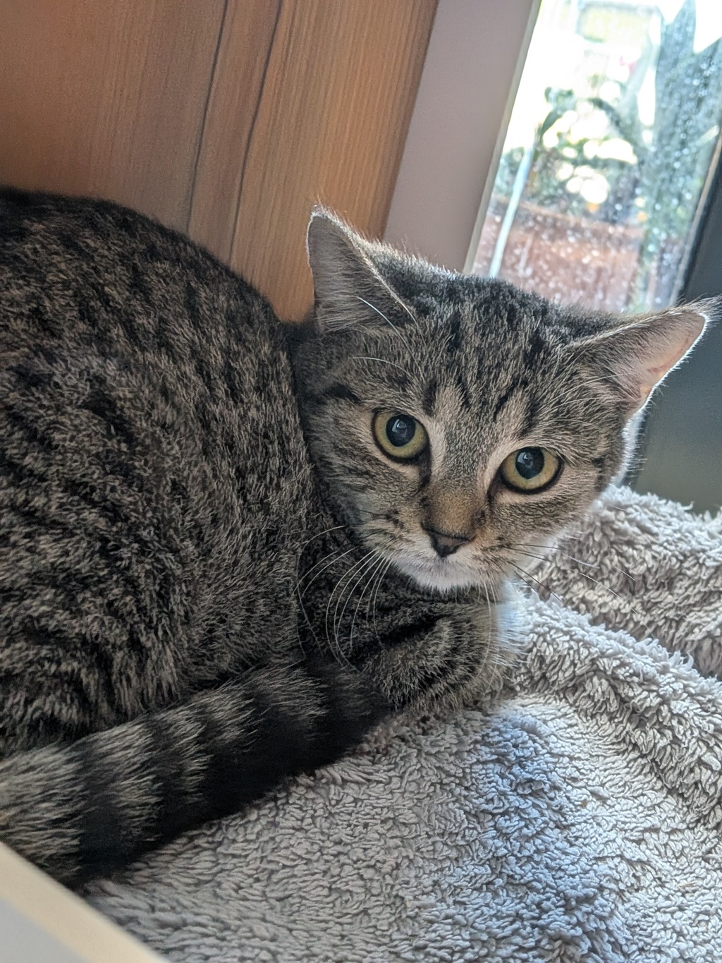 A confident, older cat in the home would be a huge help, giving her reassurance and a positive role model. While older, cat‑savvy children could be considered for the right family, a home without kids would be ideal so Pepper can progress at her own pace.
