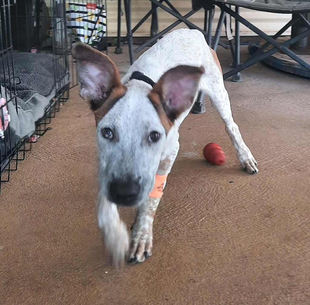 Donut is currently in foster care with a loving family, where her personality is shining more each day. Sheâs playful, a little bit goofy and full of that classic puppy charm, going from zoomies to snoozing in record time.
