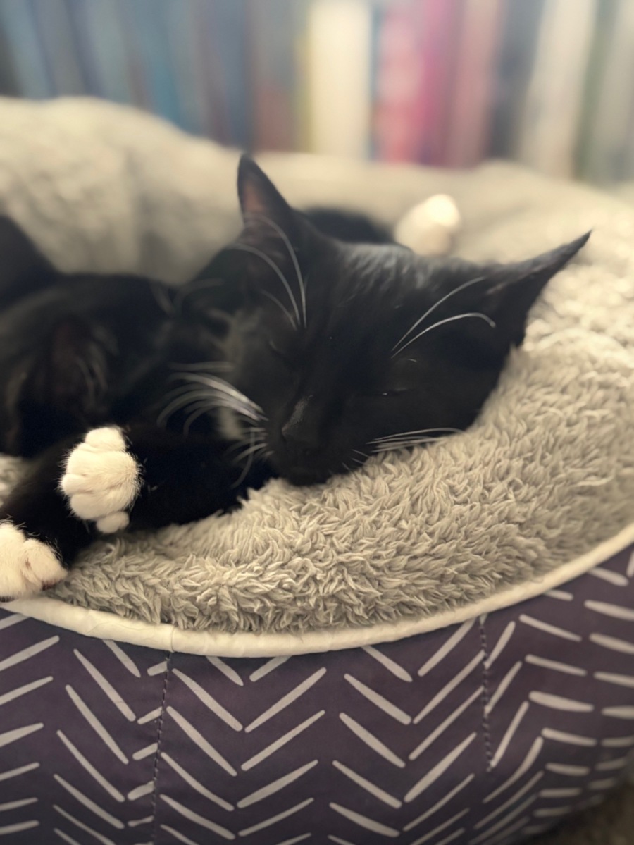 Mittens has been in foster care with children over 5 years old, as well as with other cats and a small dog. She is tolerant and curious but hasn’t done a lot of interacting- preferring to play with mum and her siblings. Mittens would be a sweet addition to your home.