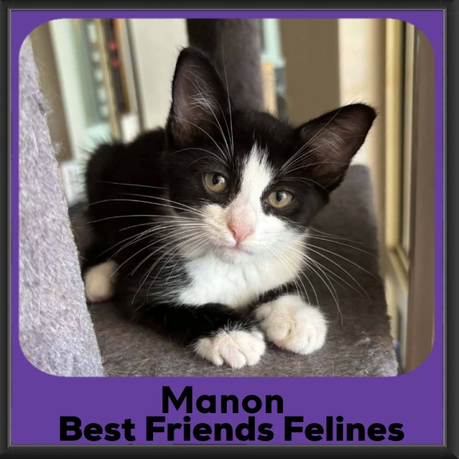 Manon may be small, but she plays with the heart of a lion. She keeps up with her siblings with ease, darting, pouncing, and wrestling like a pro. Her classic tuxedo charm shines through in everything she does — bold, elegant, and full of attitude.