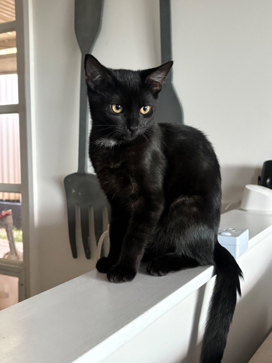 Bandit is a beautiful kitten who started off scared and suspicious but with lots of love and affection has opened up beautifully. While she takes a little bit to warm up to new people, once she does she is affectionate and sweet.