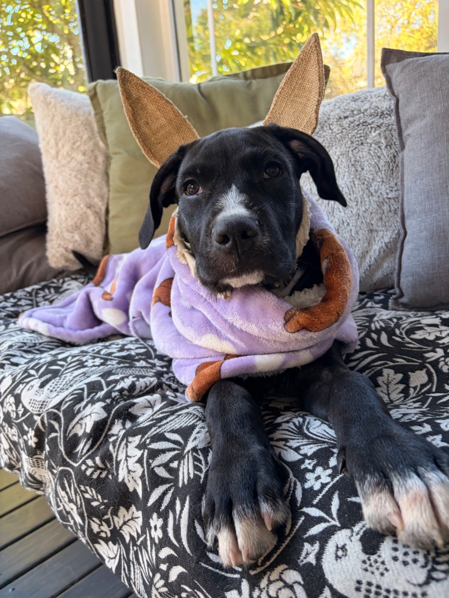 He is picking up house training very quickly, and is adapting to crate training overnight. He thrives on companionship, currently enjoying the company of his carers' dogs. While he is still just a baby, his temperament is likely better suited to a home with a doggy friend to keep him company. He has experience living with cats and has been learning poultry are friends.
