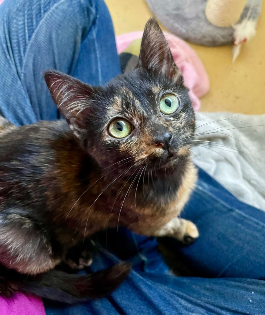 Chip is a hilarious, affectionate little character who keeps life interesting. Whether he’s puffing up at his own reflection like it’s Halloween or climbing onto your shoulders for the best view in the house, he’s guaranteed to make you smile. This purring machine loves curling up in your lap, climbing all over you, and getting into a bit of cheeky mischief. He’s also a sweetheart at heart, often grooming his best friend Juniper and sticking close to his humans. Friendly with kids and dogs, Chip is truly a ray of sunshine in kitten form.