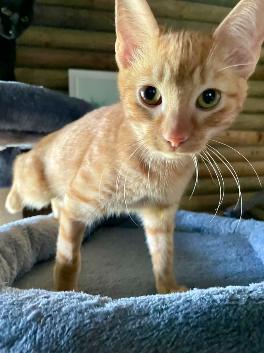 Chip is a hilarious, affectionate little character who keeps life interesting. Whether he’s puffing up at his own reflection like it’s Halloween or climbing onto your shoulders for the best view in the house, he’s guaranteed to make you smile. This purring machine loves curling up in your lap, climbing all over you, and getting into a bit of cheeky mischief. He’s also a sweetheart at heart, often grooming his best friend Juniper and sticking close to his humans. Friendly with kids and dogs, Chip is truly a ray of sunshine in kitten form.