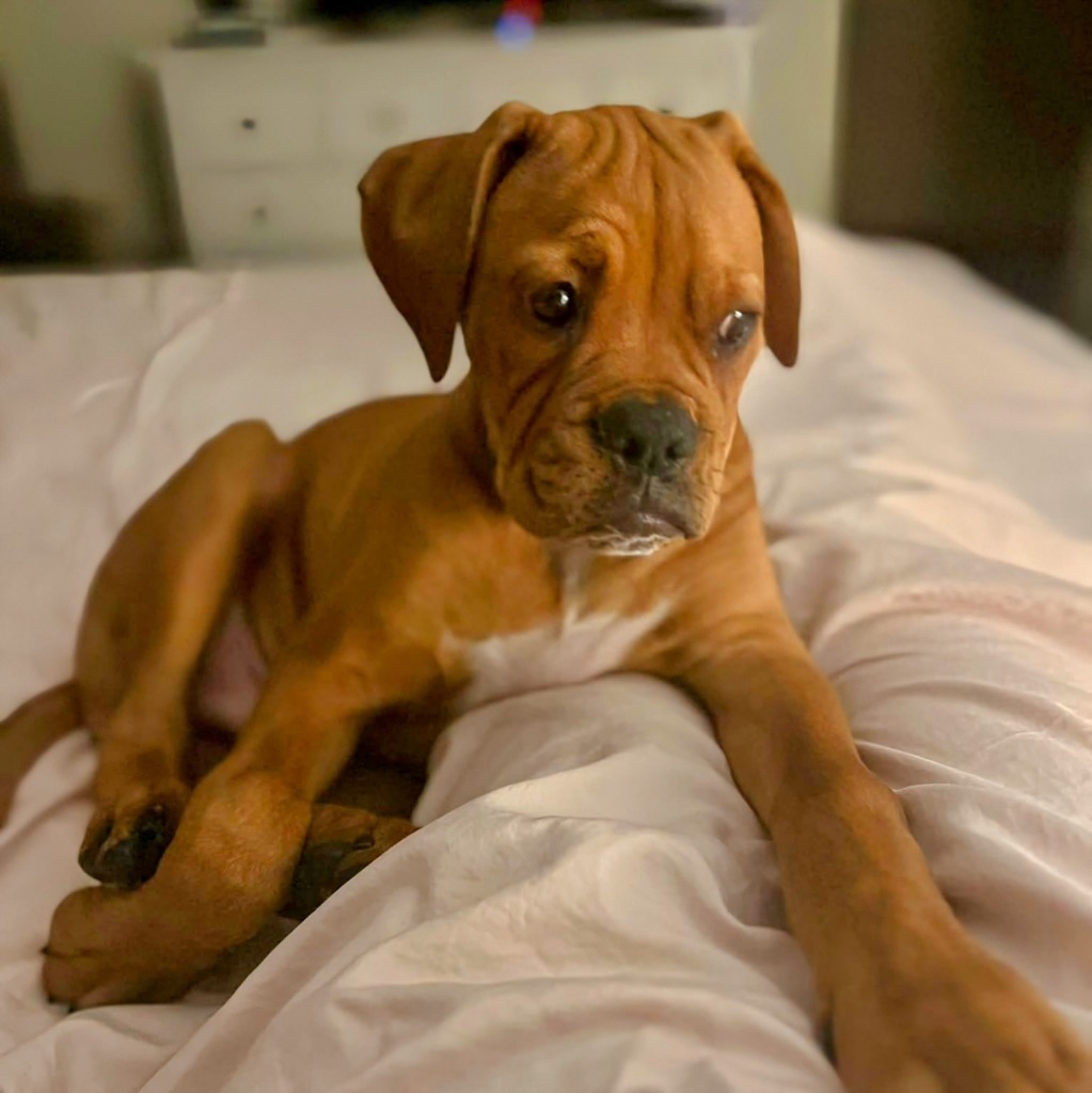 He’d suit a home looking for a gentle, affectionate, easy-going pup to grow with.