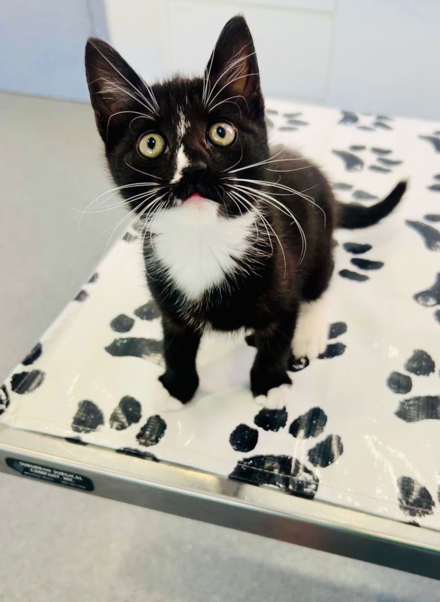 Xena is a tiny tuxedo queen with a huge personality, and at just 8 weeks old, she already lives up to her warrior name. Don’t let her size fool you—this little girl is feisty, fearless, and full of attitude!