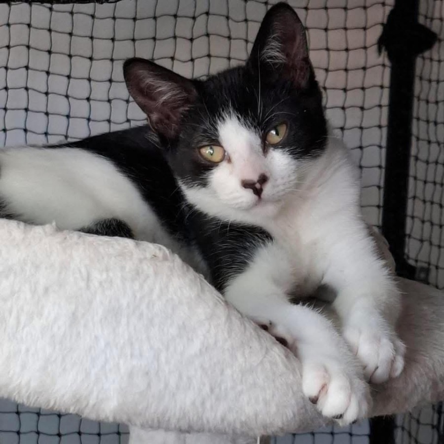 My name comes from the First Nation language, meaning “owl,” because of my wide-eyed look when I first arrived in foster care. I came in with my sister, and we both love spending time with our kitty friends.