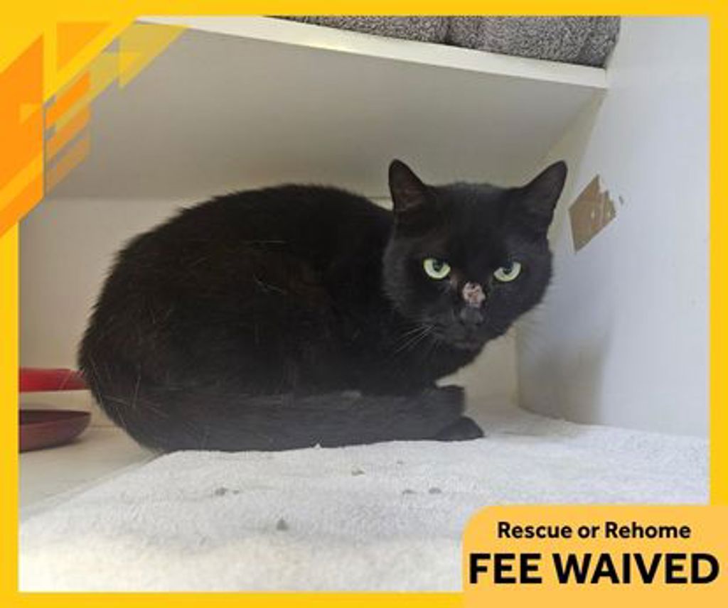 Meet Choccy Biccie - black cat, full-time menace, part-time misunderstood royalty, and absolutely convinced this shelter is beneath him.