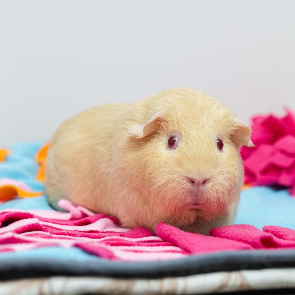 A spacious, well-appointed enclosure is a must-after all, every queen deserves her palace! Pair that with a menu of fresh veggies, high-quality hay, and nourishing pellets, and you'll have two very happy piggies.