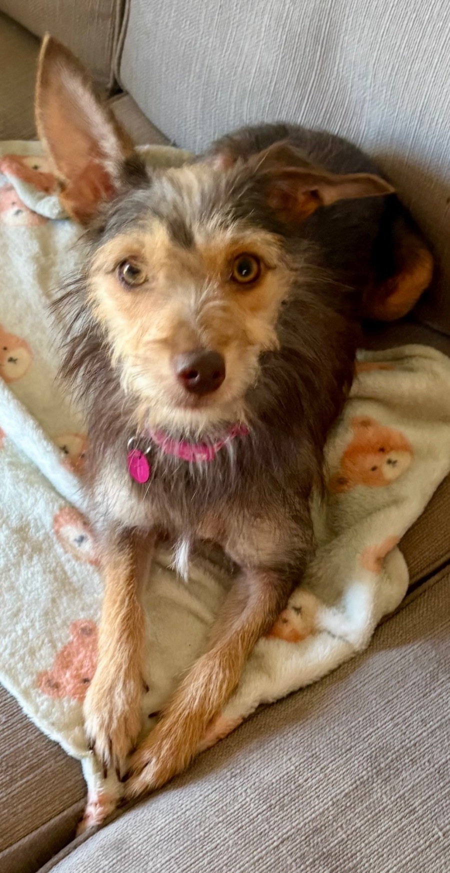 Jaz loves to chew on her favorite bones and is quickly learning the joys of walks. While she may be cautious around new dogs initially, she's been getting along splendidly with her foster siblings after taking the time to adjust. Jaz is a quick study and is making great strides walking on a lead, and proudly knows how to use the doggy door, and is toilet trained.