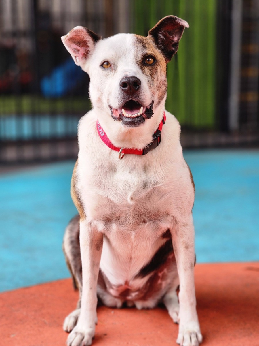 She is incredibly gentle with humans of all ages and would make the most loyal, loving companion for someone wanting a calm, affectionate best friend.