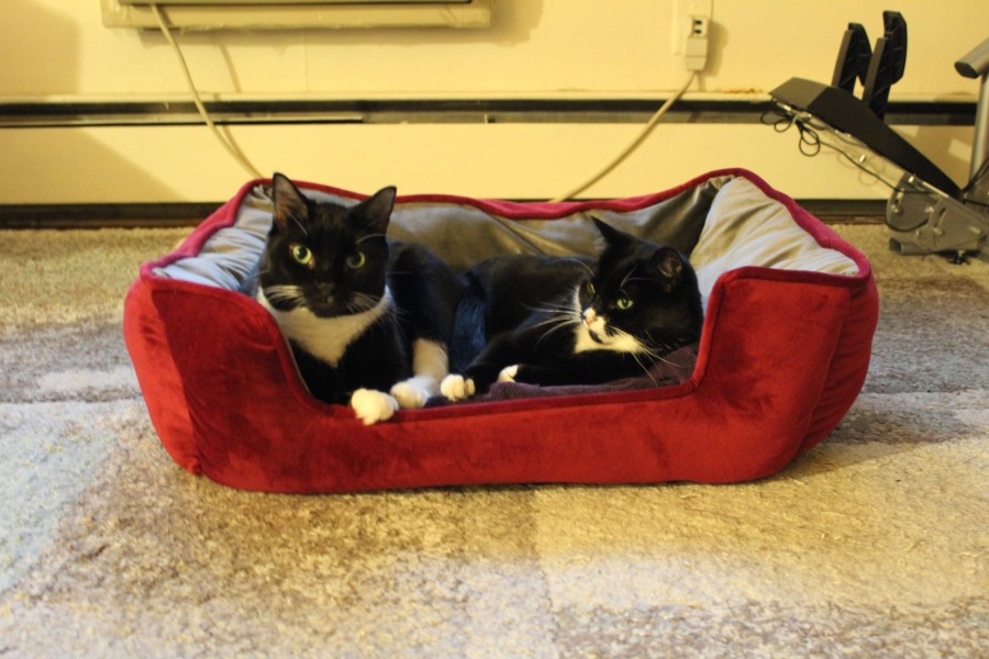 Hershey is the more adventurous and curious of the two. She enjoys exploring her environment, watching birds from the window, and playing with interactive toys. She is also particularly fond of fresh water and can often be found checking her bowl throughout the day.
