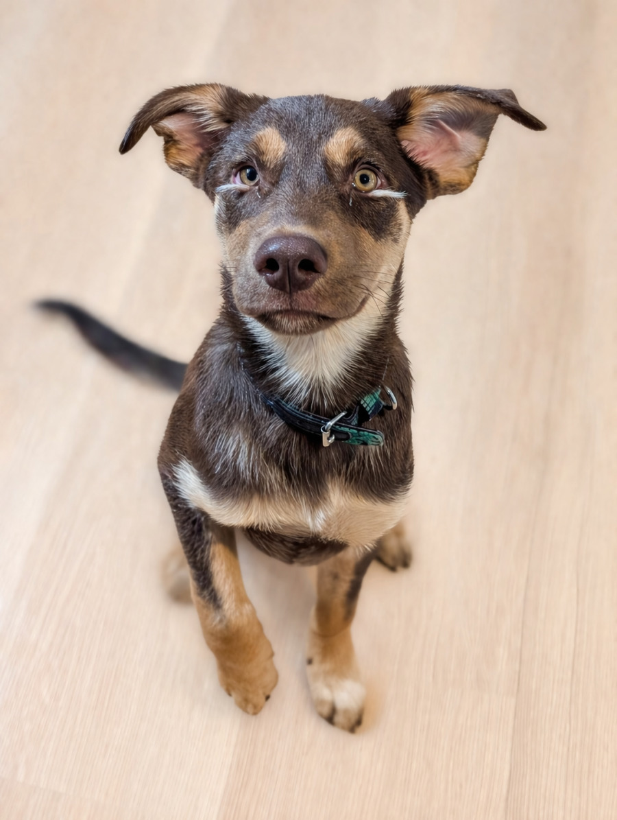 Phoenix would thrive with an active family, someone who works from home, a property lifestyle or a home with another playful dog. He is not the kind of pup who will be happy spending long days alone in a suburban backyard. He wants company, fun, adventure and plenty of opportunities to use that clever Kelpie brain.