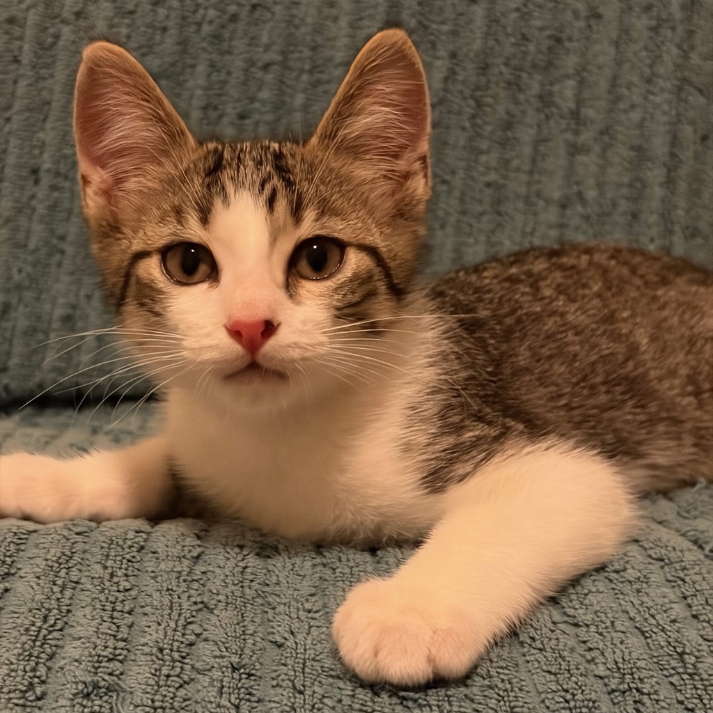 Meet Fennel, a small but mighty kitten bursting with personality and charm! This tiny adventurer is absolutely full of beans and always on the move, turning every corner of his world into an exciting playground. Fennel loves to climb and explore high places. Don't be surprised to find him balancing like a little acrobat along curtain rods or perched somewhere unexpected!