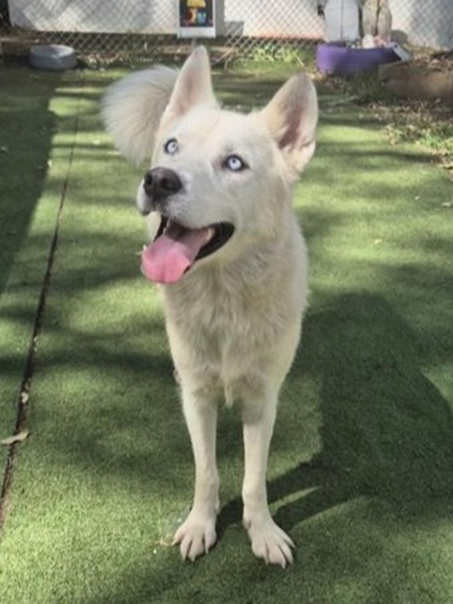 Quinn is a young, pure white husky with that classic happy-go-lucky energy —