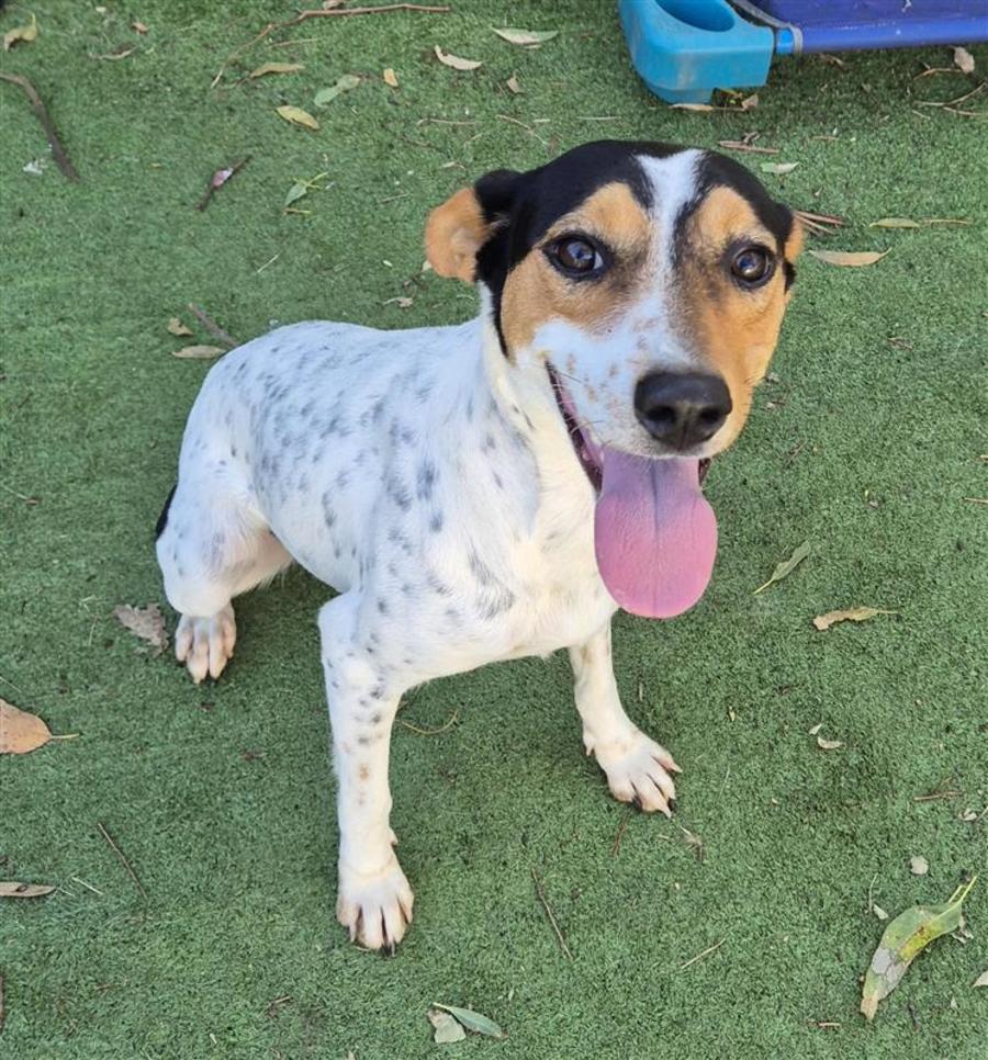 Breed? Your guess is as good as ours! Kelpie? Fox Terrier? Border Collie? A sprinkle of all three? Whatever she is, she’s 100% FUN. 🎉