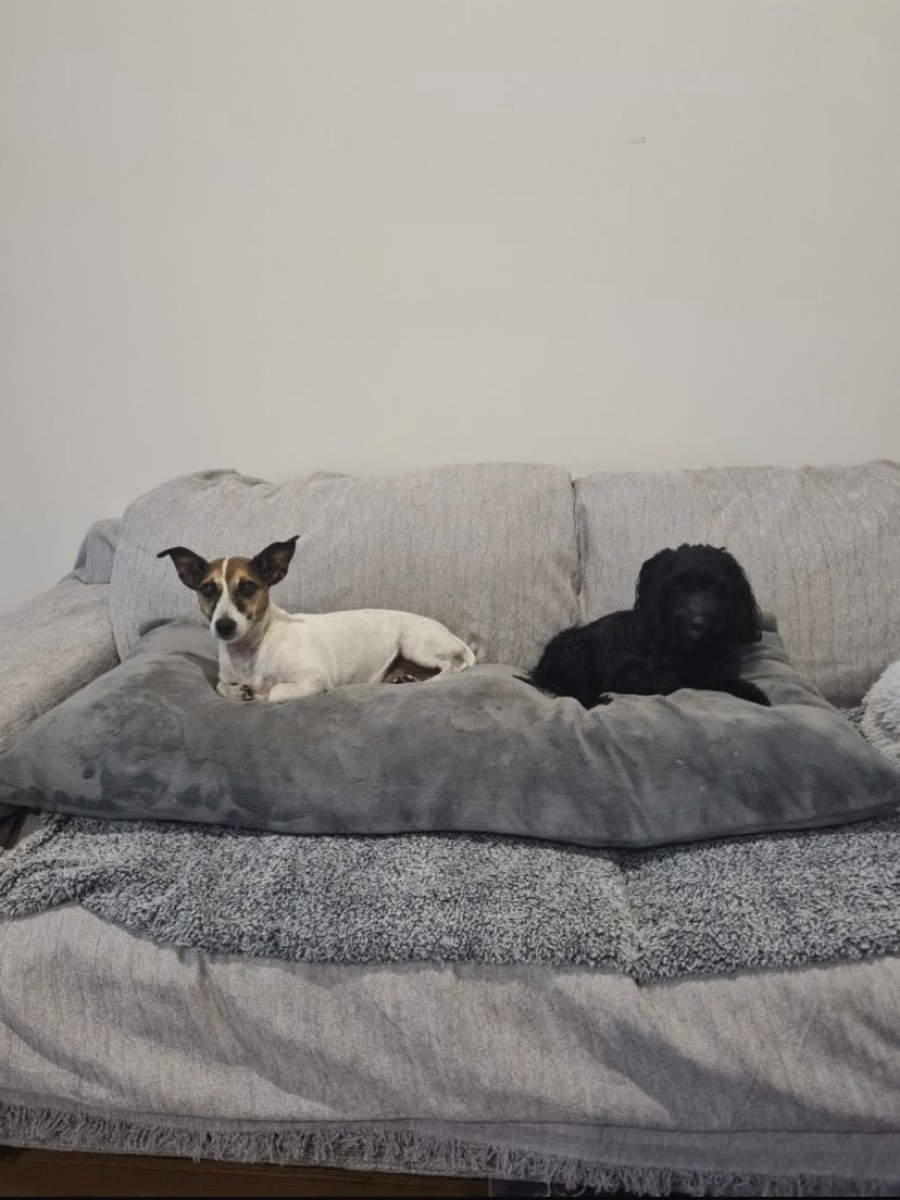 On the other hand, Jake is a sweet and slightly anxious fellow who looks to his sister for confidence. He is great with dog-savvy cats, although occasionally, he can become a bit fixated on them. He enjoys his walks and park visits but does best with introductions to other dogs on leads. He is extremely good around other dogs in the home, it's just the initial meet he can take a minute to warm up.