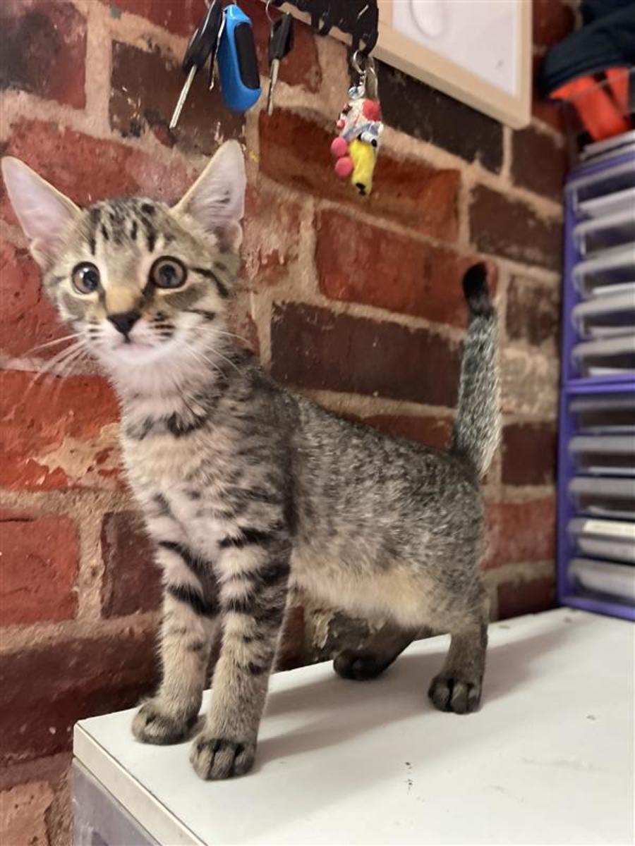 Introducing Marty, a delightful 10-week-old feline bundle of joy that's eager to bring warmth and laughter into your life! With a sensational personality that shines through in everything he does, Marty is the perfect mix of fun, curiosity, and playfulness all wrapped up in one pint-sized package. His friendly nature makes him an instant companion to anyone he meets, whether it's a snuggle on the couch or an engaging game of chase.
