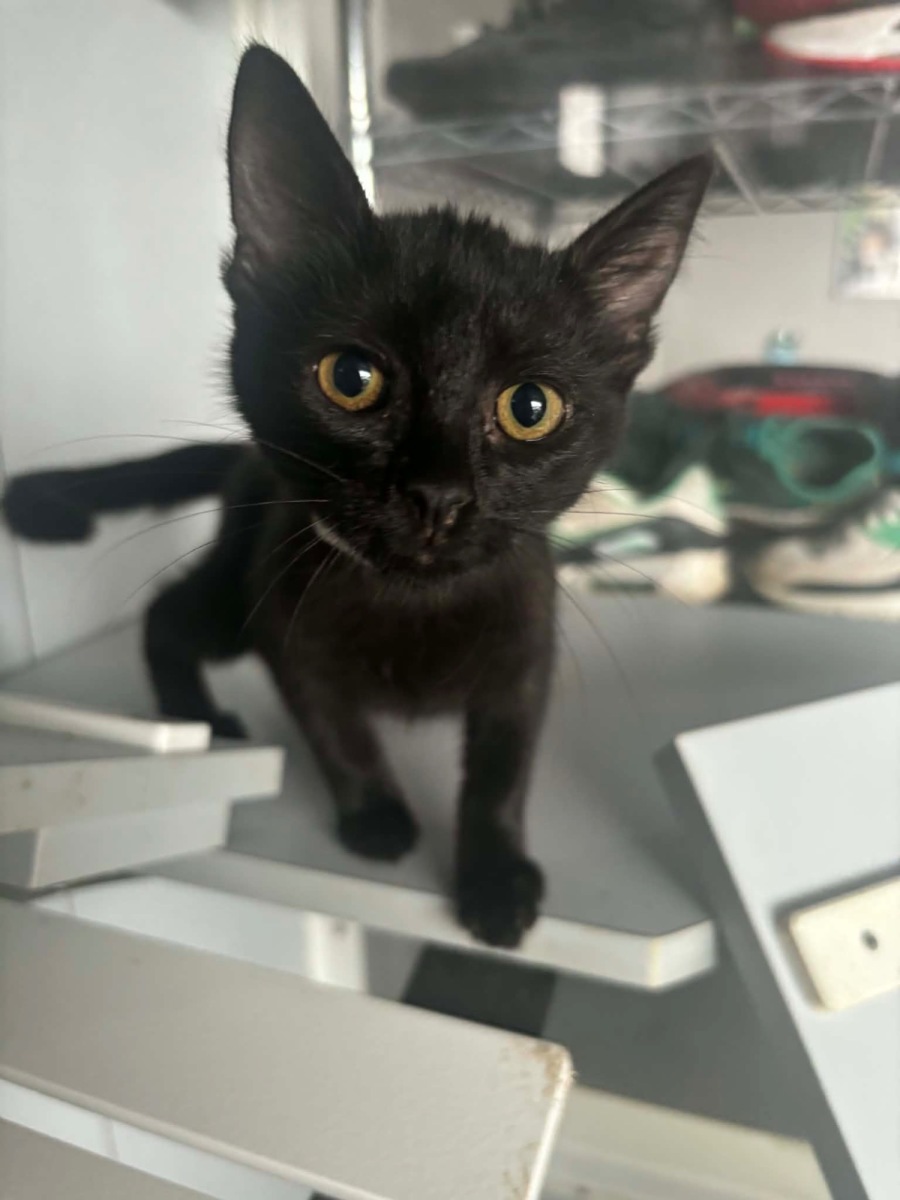 Amy-Lee is a tiny black kitten with a big personality and a name inspired by Amy Lee of Evanescence. While her name carries a touch of gothic elegance, this little sweetheart is all sunshine and playfulness. She spends her days chasing toys, pouncing with surprising grace, and then stretching out for her favourite pastime—a cozy sun bake in the warmest spot she can find.