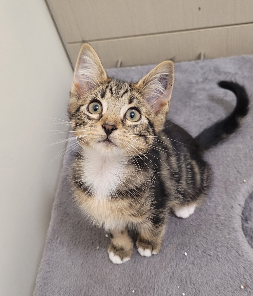 She does have a low-grade, innocent heart murmur, which is not expected to impact her quality of life, and she is otherwise a happy, healthy kitten ready for her next chapter.