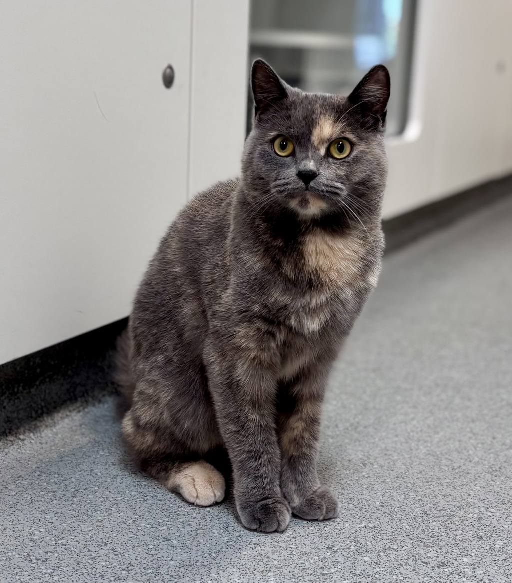 Savannah is a gorgeous 10-month-old British Shorthair cross with a unique muted tortoiseshell coat that's as soft and subtle as her personality is bright.