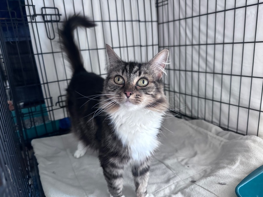 She was surrendered due to owners change of situation . She is a loving sweet cat that enjoys affection and pats however isn't overly needy.