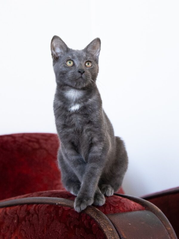 Meet Johnny, a striking grey kitten bursting with personality and curiosity. Johnny’s favourite thing in the world is a good box. If there’s a box in the room, you can bet he’ll be investigating, pouncing, climbing inside, and thoroughly inspecting every corner. He finds endless entertainment chasing his own tail, often keeping himself occupied for hours with this amusing game.