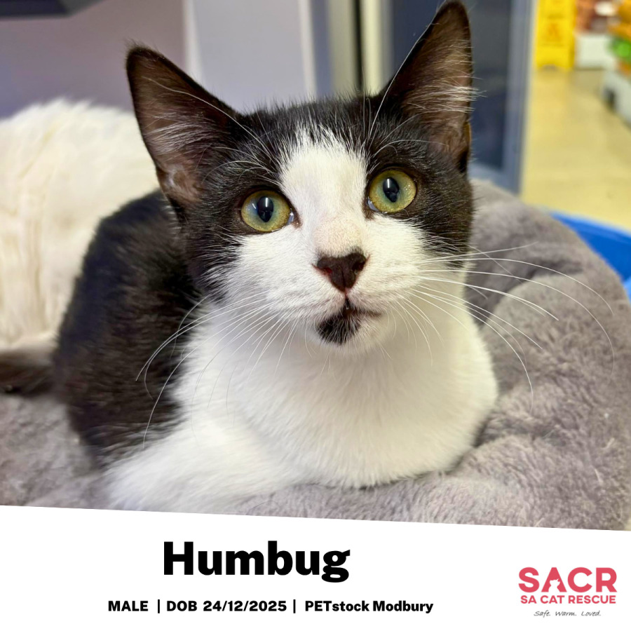 As sweet as the candy he’s named after, Humbug is the kind of kitten who just loves everyone. Pick him up and he’ll melt straight into your arms, purring away like he’s been waiting all day for that exact moment.