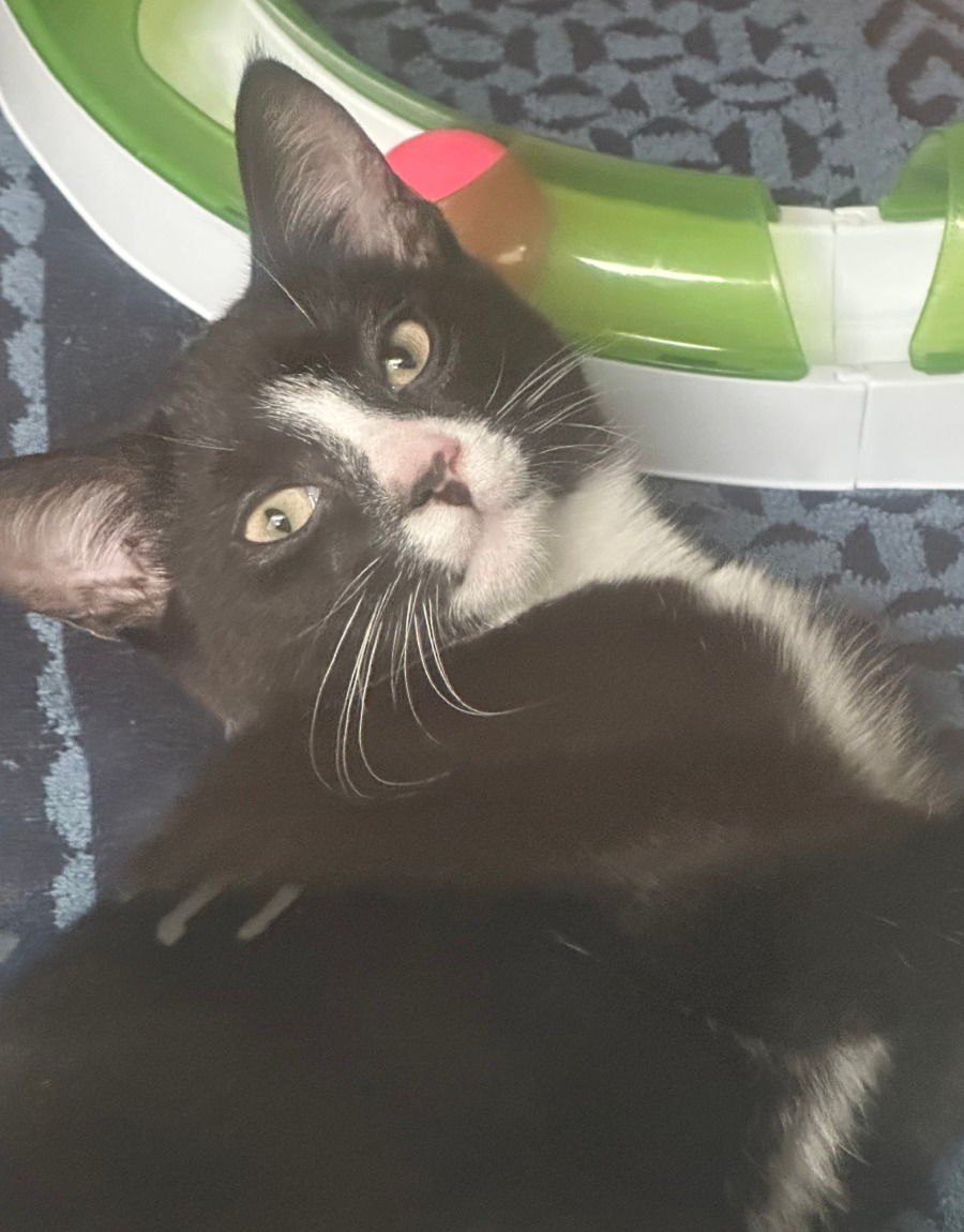 Beatrice is a charming kitten with a heart as soft her purrs. She’s a devoted cuddle enthusiast, always ready to curl up close and soak in every bit of warmth – whether it’s a sunny patch on the floor or your lap at the end of a long day. When it’s time to rest, she stretches out to her full, elegant length, completely relaxed and utterly content.