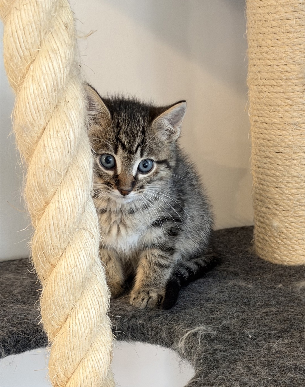 Once he feels safe, Atticus blossoms into a playful and curious kitten who loves to explore his surroundings and chase after toys. He has a sweet, endearing nature, and watching his confidence grow is incredibly rewarding. He's the kind of boy who will quietly come out of his shell and then surprise you with his playful antics and soft affection.