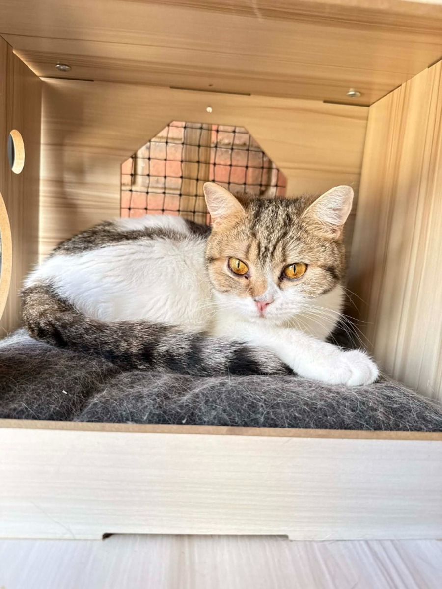 In a calmer home, with patient humans and fewer competing personalities, we believe her true nature will begin to blossom. She may never be a velcro cat—but for the right person, there’s something incredibly special about earning the trust of a more reserved companion.