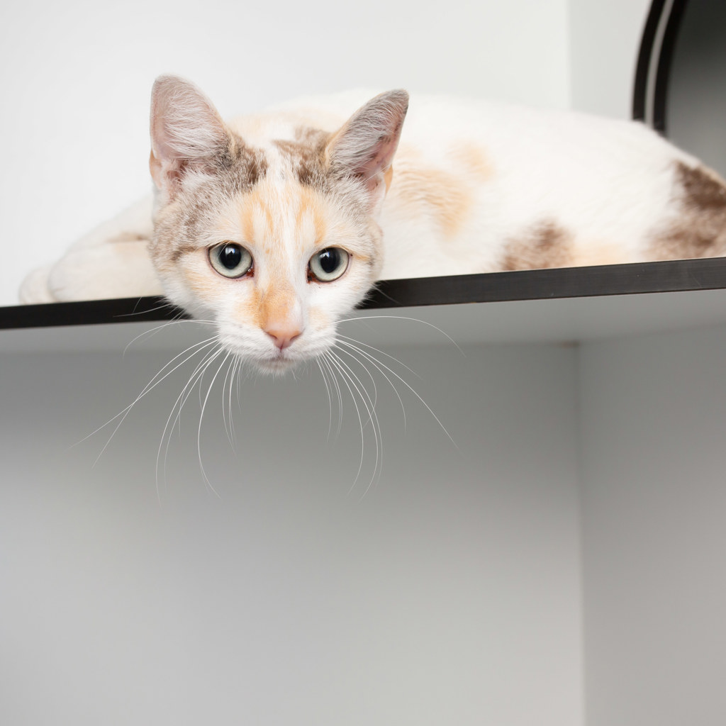 Syren is an adventurous spirit who enjoys exploring her surroundings and keeping herself entertained. She would thrive in a home with another friendly feline companion to share her playful energy and curiosity.