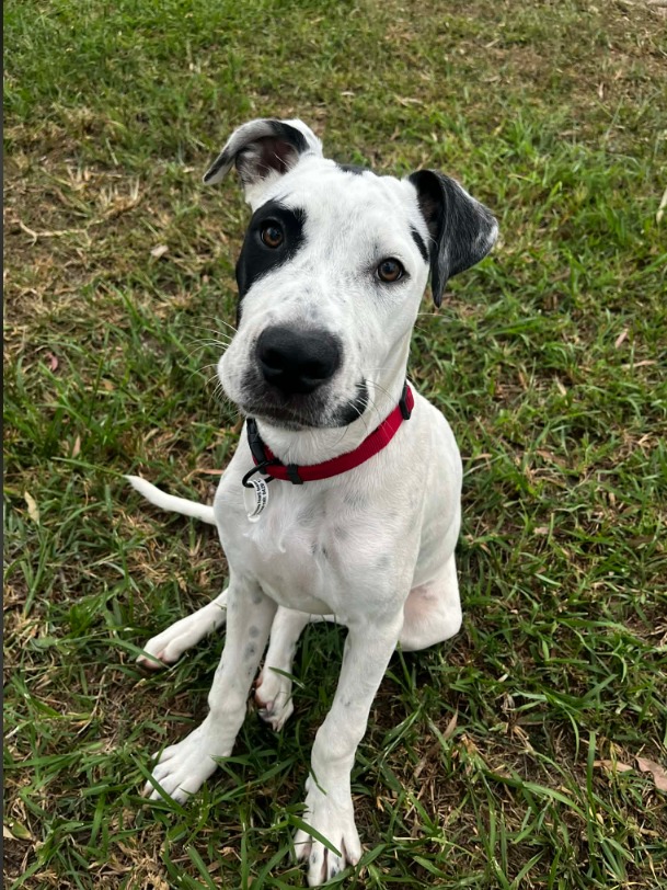 I’m a Great Dane x Bull Arab mixed-breed goofball! I’m a young pup who recently came into foster care. I’m now living on a farm and get along really well with all my foster siblings, kitty, piggies, and cows included.