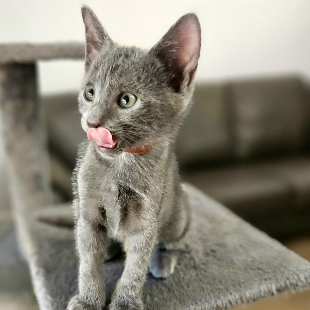 Merlin is a chatty little kitten with a gentle voice and a big personality. He loves greeting his people each morning with soft, sleepy mews before starting his day of adventures and cuddles.