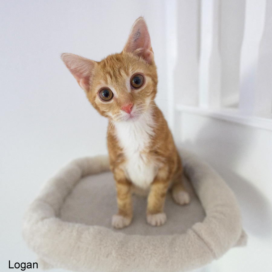 Logan is the more confident of the two and has a slightly darker coat with swirl patterns. He is very friendly and loves being around humans. He will often approach for pats or face licks and enjoys sleeping in his foster carer’s bed.