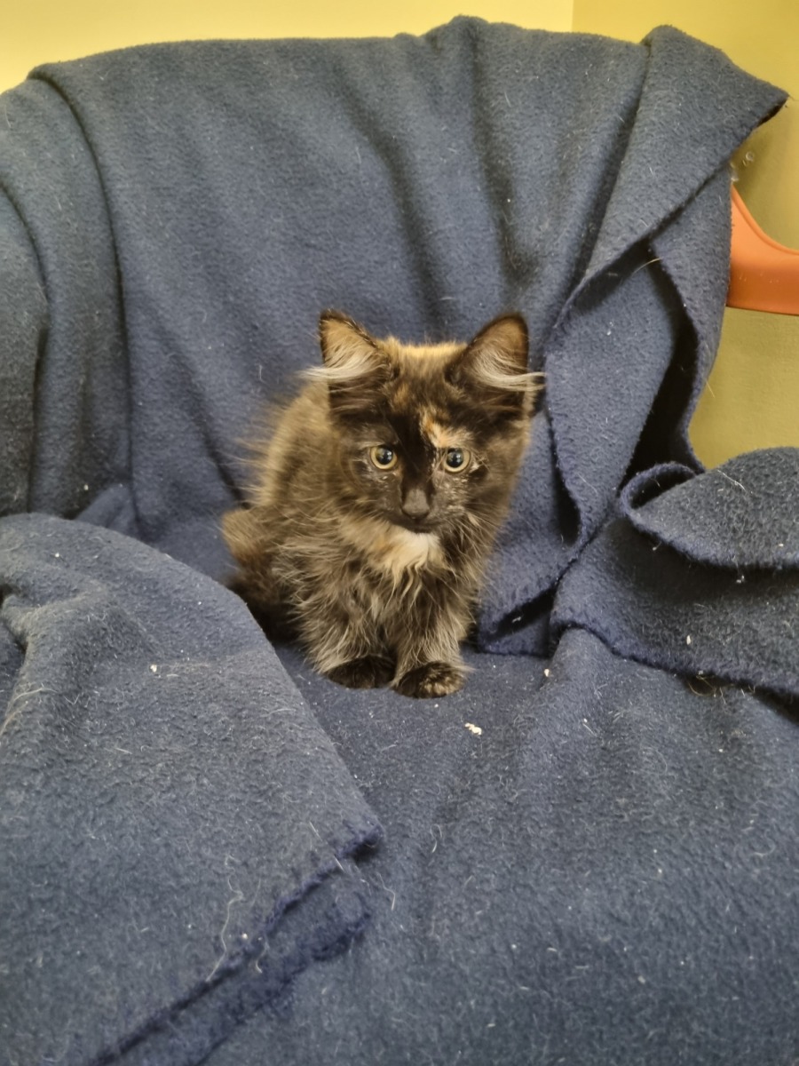 Meet Evie, an adorable kitten with a heart full of curiosity and a spirit that's waiting to shine in the right home! At first glance, Evie may appear a touch shy, but don't let that fool you; underneath that initial reserve lies a playful and energetic feline eager to explore and engage.