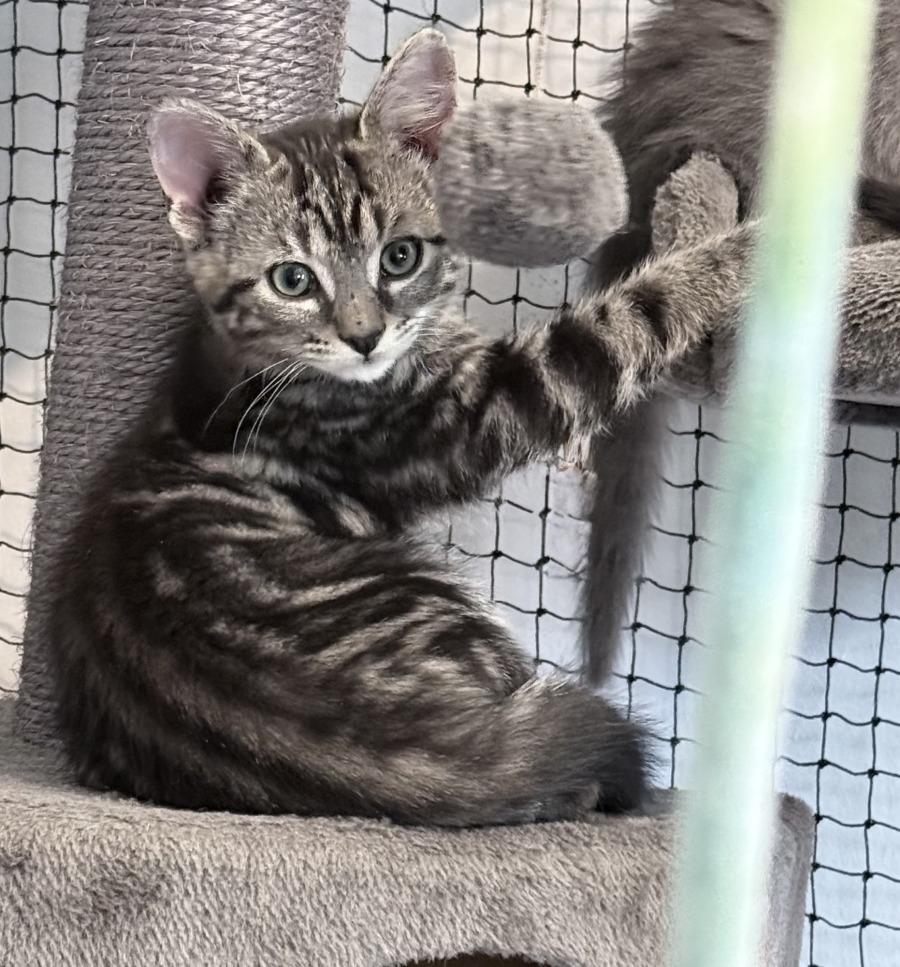 Zeus is a gentle, observant boy who likes to take his time getting to know the world around him. He can come across a little shy at first, often choosing a quiet corner where he can sit back and watch everything unfold. Rather than leading the charge, Zeus is more of a follower, taking cues from his siblings and other cats before joining in.
