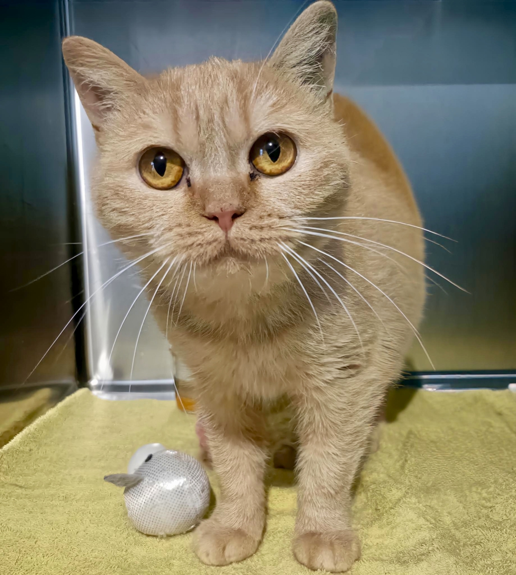 Dolly is a beautiful female British Shorthair with stunning amber eyes and a soft ginger coat that's impossible not to admire. She's an incredibly shy girl who is still learning to feel safe and confident around people, but with patience and kindness, her gentle nature is slowly beginning to shine through. Dolly hasn't had much early socialisation, so she's looking for someone who understands that trust takes time-but the reward is a truly special bond.