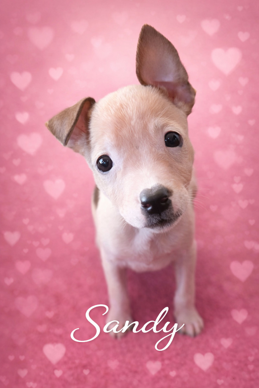 Sweet little Sandy is an 8 week old mixed breed pooch who has found herself searching for a forever home.