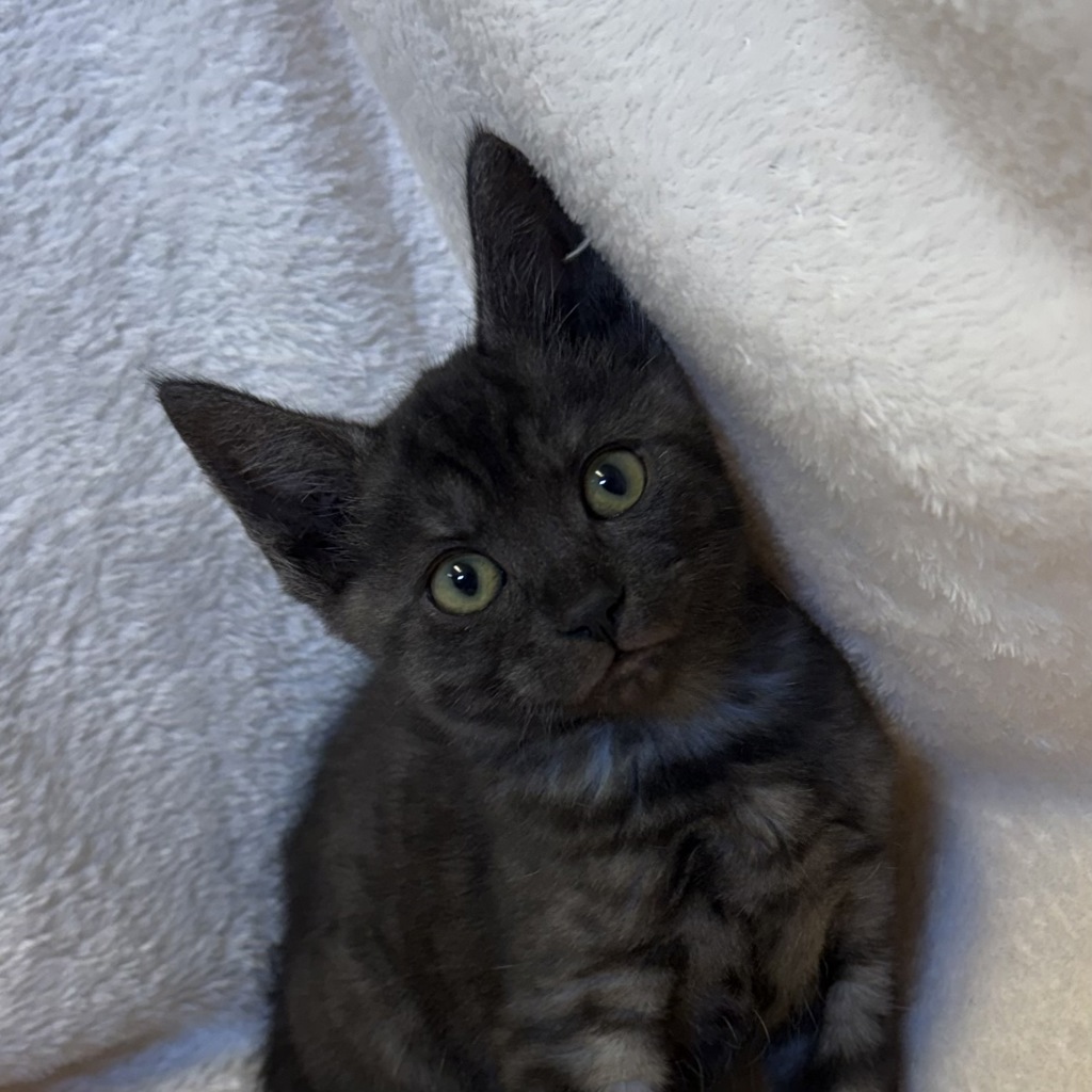 Pickle is the kind of kitten who turns every ordinary moment into a tiny adventure. With bright, curious eyes and a tail that never seems to stop flicking, Pickle is always on the move-chasing shadows, pouncing on imaginary foes, and investigating every corner like it holds a secret treasure. Mischief follows closely behind wherever Pickle goes, but it's impossible not to smile at the playful chaos.