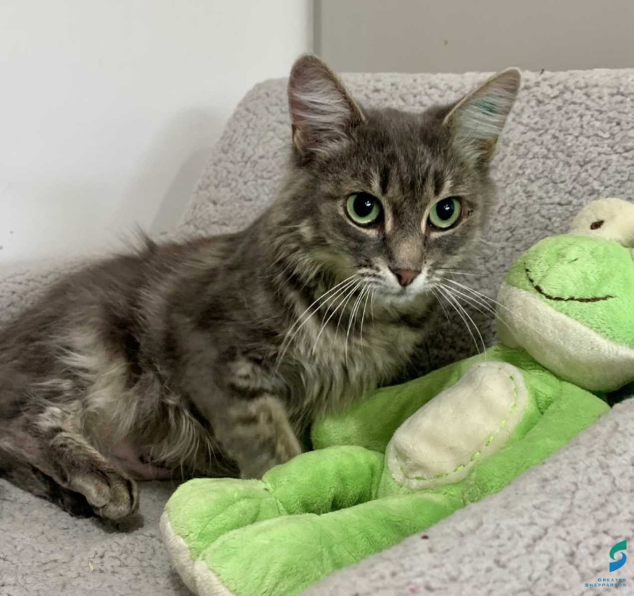 Eve is a sweet, 3 year old Grey Tabby with the most beautiful green eyes! 💚