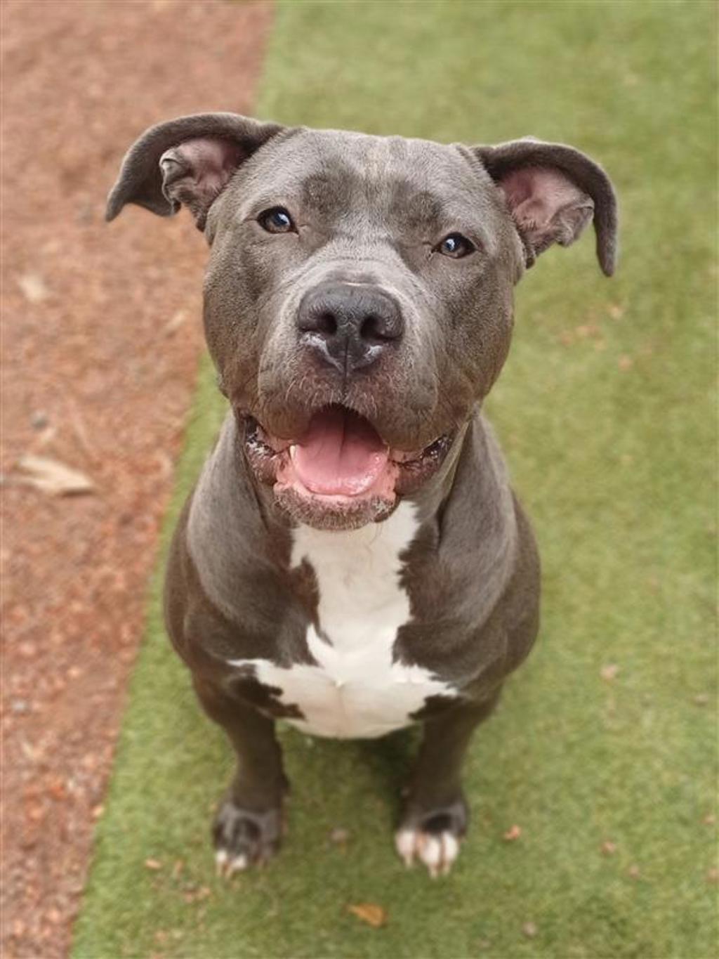 Gloria is a BIG girl with a BIG personality to match. Whilst she has great foundations in place when it comes to basic training, she does tend to throw her weight around and exhibits some of the traits that make this breed best suited to experienced, confident owners. She loves squeaky toys, is highly food motivated, and already knows "sit," with lots of potential to learn more. She'll thrive with ongoing, positive training to help her build good manners. Gloria isn't suited to homes with cats or small animals.