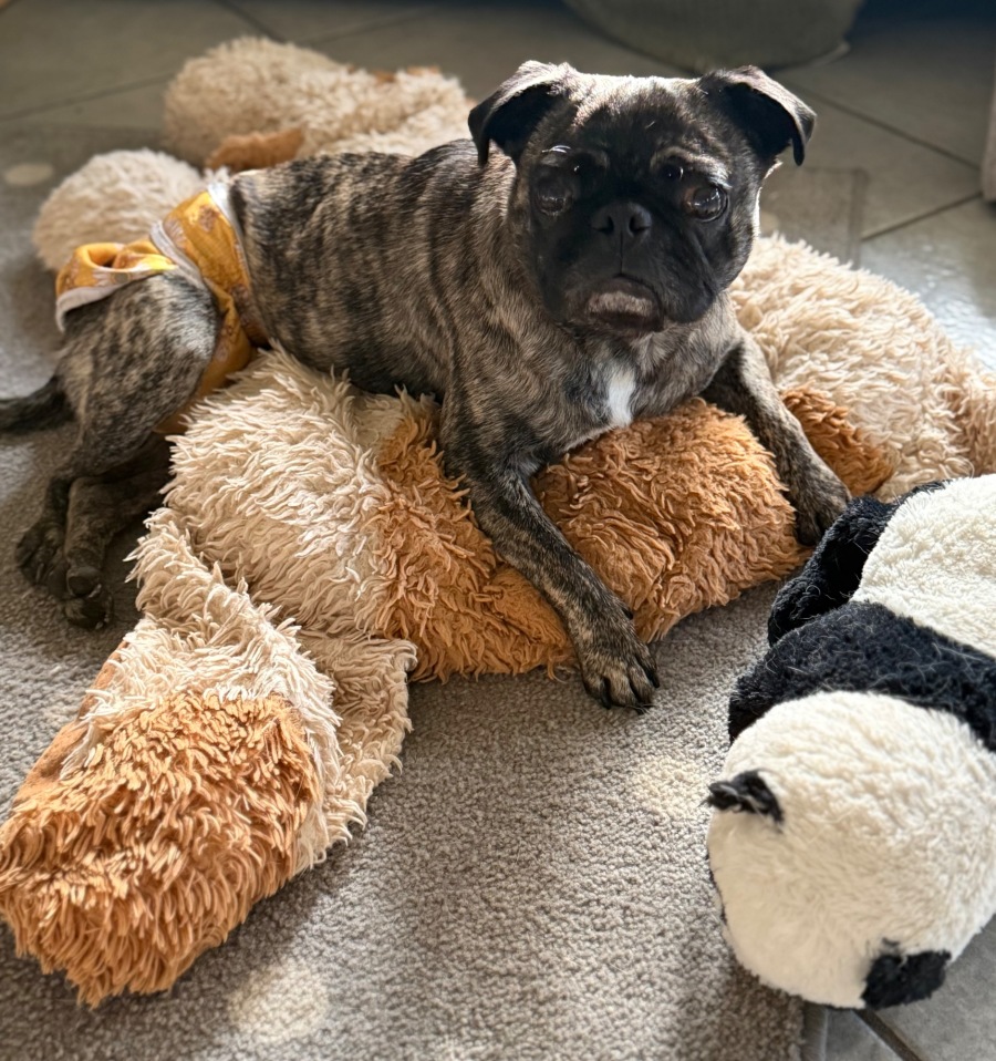 Miss Milly has been in foster care 6mths and she is a special needs 5yr old Pug X Frenchie with hemivertebrae at T7/8. Her condition will not improve.