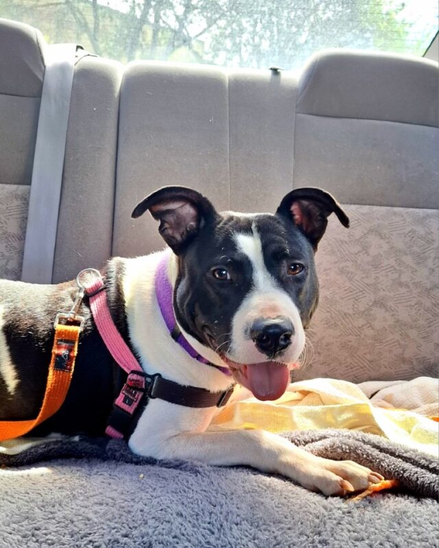 While in care, Thunderbolt has shown positive social behaviors with other dogs. He may do well with a canine companion, but it’s important that any potential doggy friend matches his energy level and playful style to ensure a happy and balanced relationship.