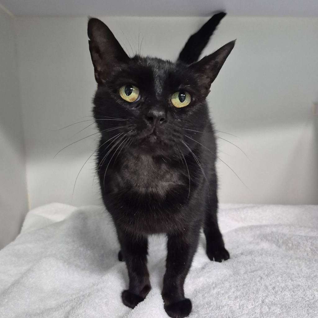 Meet Patty Cakes, our gorgeous 7-year-old black beauty with a heart as soft as freshly baked sponge. This curious little lady is always keen to see what you're up to, happily padding along behind you like a tiny shadow with whiskers. If there's something happening, Patty Cakes wants a front row seat... and possibly a gentle sniff to approve it.