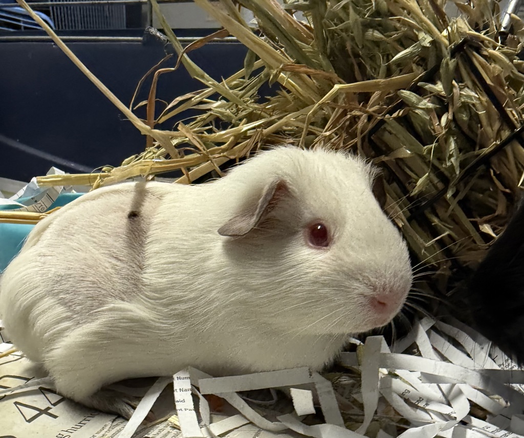 Meet Pyrite, a charming little guinea pig with a heart as warm as her name suggests. This sweet girl may be small, but her personality shines brightly-full of gentle curiosity and quiet affection. Pyrite enjoys cozy hideouts, fresh veggies, and the soothing company of people who take the time to earn her trust.